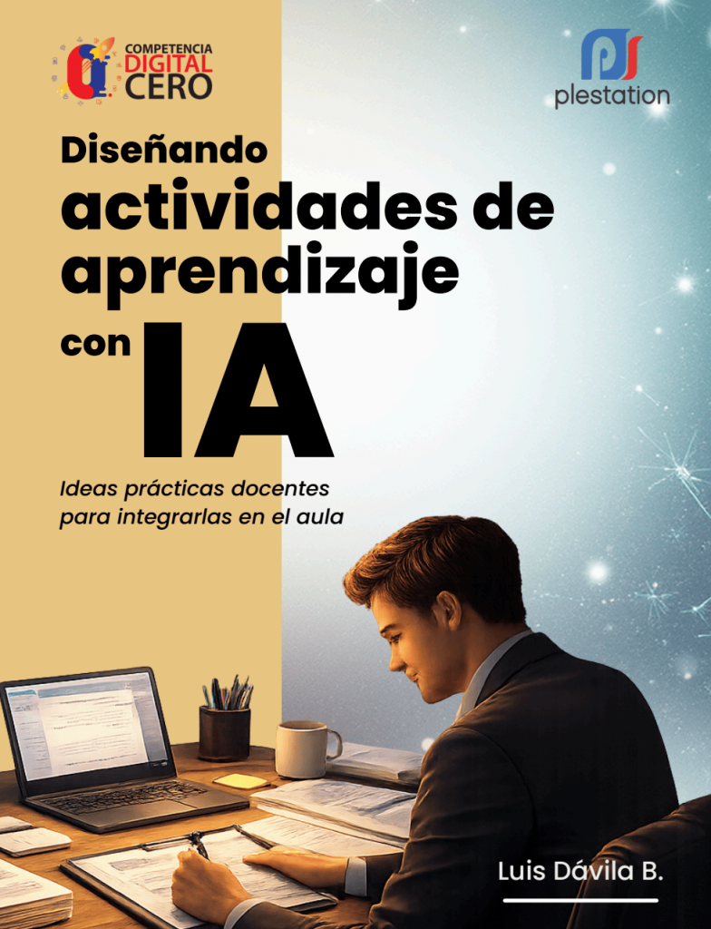 Diseñando actividades de aprendizaje con IA, ideas prácticas docentes para integrarlas en el aula es la obra realizada por nuestro compañero Luis Dávila Banda, y compartido en abierto para nuestra #ComunidadCD0.